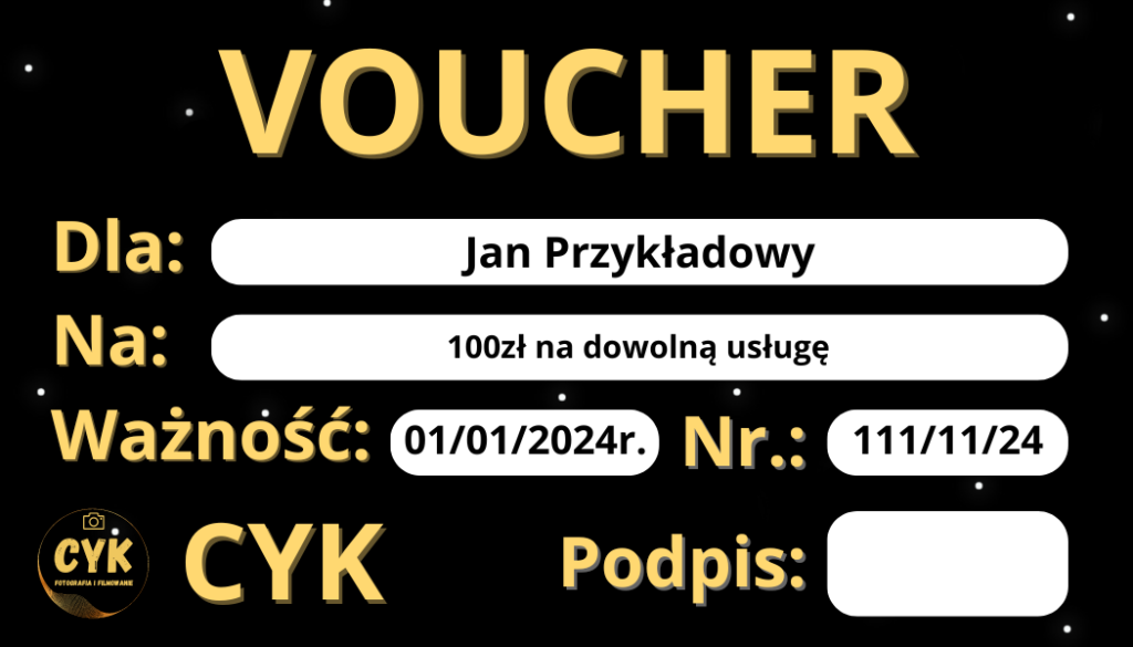 Można zakupić VOUCHER podarunkowy kwotowy. Tyle ile klient będzie chciał zapłacić, to za tą samą sumę otrzyma VOUCHER ważny 365 dni.